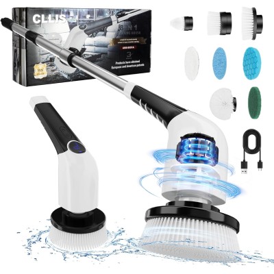 Electric Spin Scrubber, Shower Scrubber with Long Handle & 8 Replaceable Brush Heads, 3 Speeds Cleaning Brush Power Scrubber
