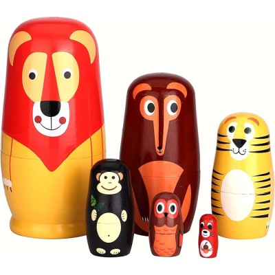 6 Pcs Russian Nesting Dolls, Cute Cartoon Animals Handmade Wood Stacking Matryoshka Nesting Dolls for Kids Birthday Wishing Gift