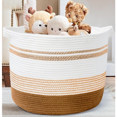 Blanket Basket 100% Cotton Rope Woven Storage Basket (22x14 Inches) 90L XXX-Large Laundry Basket