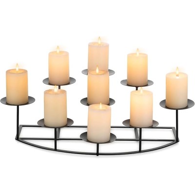 Candelabra Fireplace Candle Holder: Black Metal Pillar Candle Holders