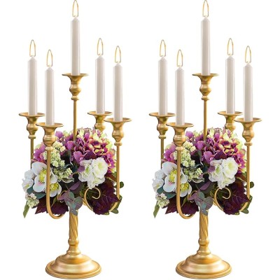 Metal Candelabra Gold Candle Stand 20in Tall, 5-Candle Candlestick Holder for Taper Candles