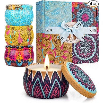 Candles Gifts for Women - 4x3.5oz Scented Portable Travel Tin Christmas Aromatherapy Candles