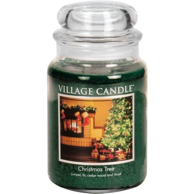 Village Candle Christmas Tree Large Glass Apothecary Jar Scented Candle, (26oz), Green