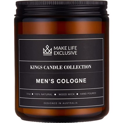 Scented Candles for Men | Men's Cologne, Amber Sandalwood Scent | Wood Wick, Long Lasting, Masculine Scents