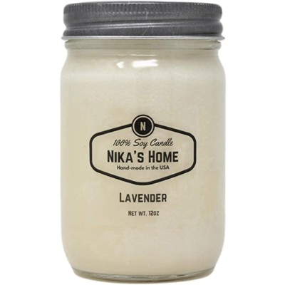 Nika's Home Lavender Soy Candle 12oz Mason Jar Non-Toxic White Soy Candle Handmade