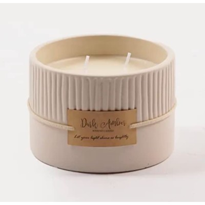 Highly Fragranced 2-Wick Ceramic Jar Candle - Beige Dark Amber Luxury Natural Candles for Aromatherapy