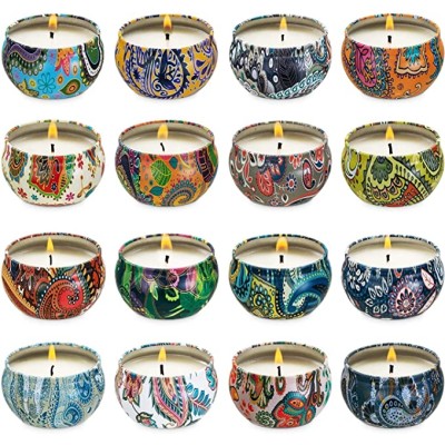 JHENG Set of 16 Small Scented Candles Soy Wax Aromatherapy Candles 2.5 OZ Portable Tin Candles with Lid