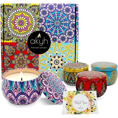 Scented Candles Gift Set, 8% Essential Oil, 4 Pack Aromatherapy Candle, Ideal for Birthday, Christmas, Mother's Day