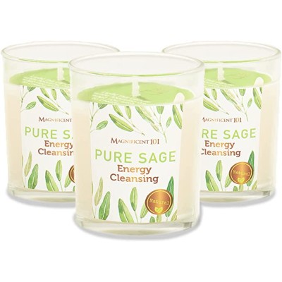 Magnificent 101 Set of 3 Long Lasting Pure Sage Candles - 3.5 Oz Each Relax & Restore The Body & Mind