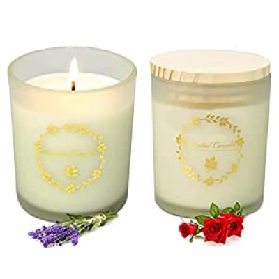 Lavender & Rose Scented Soy Aromatherapy Candles Gifts for Women, 10.6 oz 2 Pack 70 Hours Burn
