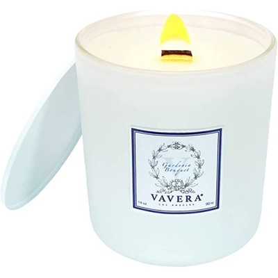 VAVERA Gardenia Bouquet Long Burning Wooden Wick Natural Soy Luxury Candles (11oz/60 hr/Matt White Jar)