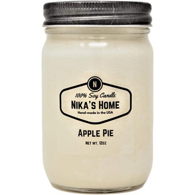 Nika's Home Apple Pie Soy Candle 12oz Mason Jar Non-Toxic White Soy Handmade