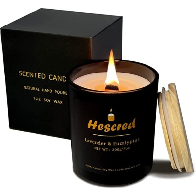 Hescred Scented Candle, Eucalyptus & Lavender Wood Wick Candles, Home Scented Pillar Candle