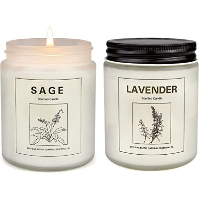 Sage Candles for Home Scented, Aromatherapy Lavender Candle, Soy Wax Candle Set 2 Pack