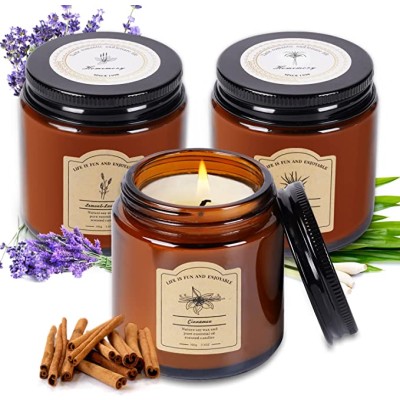 3 Pcs Scented Candles for Home, Natural Soy Wax Candles with Essential Oils, Cinnamon, Lavender & Citronella Scented Candles