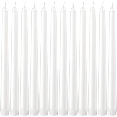 12 Pack Tall Taper - 10 Inch White Dripless, Unscented Dinner Candle - Paraffin Wax with Cotton Wicks - 7.5-8 Hour Burn Time