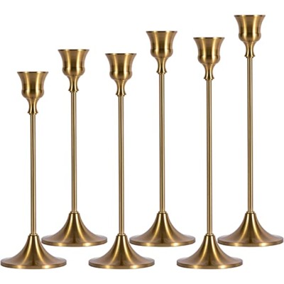 Brass Gold Candlestick Holder Set of 6 Candle Stick Holders kit Classic Decorative Candle Stick
