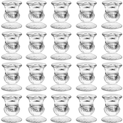 Set of 20 Glass Candlestick Holders 2.5 Inch Taper Candle Holders Bulk