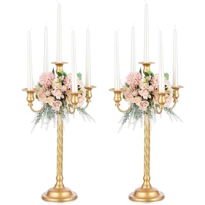 Romadedi Candelabra Gold Candle Stand: 21'' Tall 5-Branch Candlestick Holder