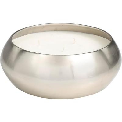 Metal Candle Sweet Bamboo Scented Wide 125 oz 5 Wick with White Wax, 11" x 11" x 4", Silver