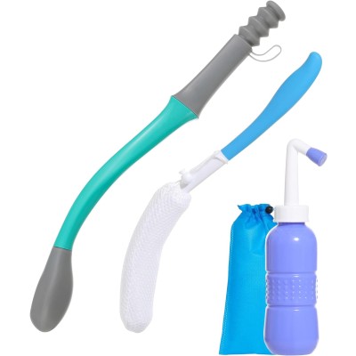 Toilet Aids Set for Wiping - Long Handle Butt Wiper for People Overweight, Elderly and Disabled, Bottom Buddy Wiping Aid