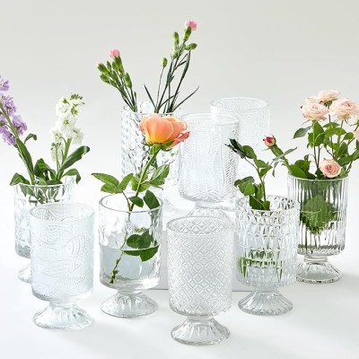 9 Set Flower Vase Glass Crystal Vases Embossed Pedestal Vases