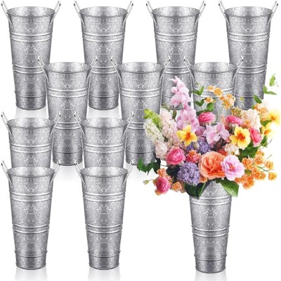 12 PCS 12 Inch Galvanized Metal Vase with Handles Bulk Tin Flower Buckets