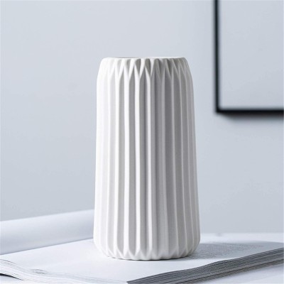 White Flower Vase, 8.3'' H Ceramic Vase, Origami Stripe Frosted Matte Surface, Modern Vase