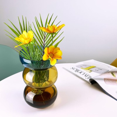 Glass Handmade Decorative Vase Ombre Centerpiece Vase with Yellow Base, Flower Vase for Home Decoration 8" x 6" x 12"