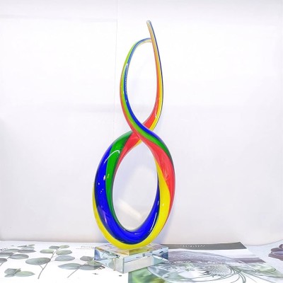 Abstract Ribbon Glass Sculpture 14" Hand Blown Colorful Glass Art Statue on Crystal Base Home Decor Gift