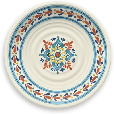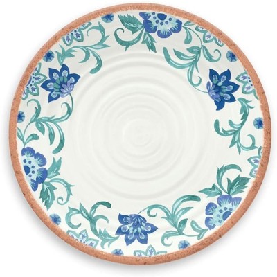 Turquoise Floral Dinner Plate, 10.6 inches (27 cm), Dish, Break-Resistant, Melamine Tableware