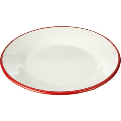 Dish Plain 22 cm of Enamelled Steel in White/red, 22 x 22 x 5 cm