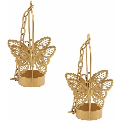 Decorative Aluminium Hanging Butterfly Tea Light Hanging Candle Holder Lantern (Pack of 2)