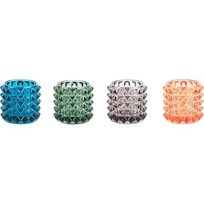 Tea Light Holder Set Diamond Cut Glass, 4, Assorted Colours, 7 x 7.5 cm