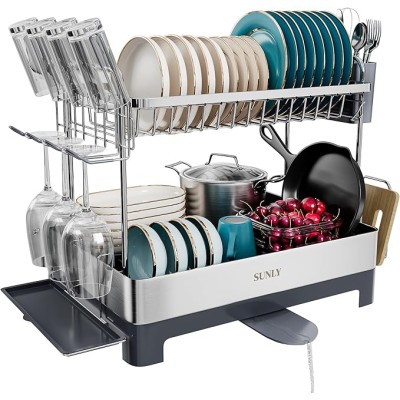 Dish Racks for Kitchen Counter, 304 Stainless Steel Kitchen Drying Rack, Multipurpose 2 Tier Dish Drying Rack