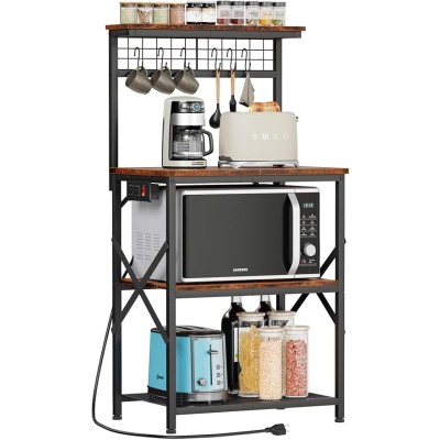 Furologee Kitchen Bakers Rack with Power Outlet, Microwave Oven Stand with Storage 4 Tiers, Coffee Bar Table