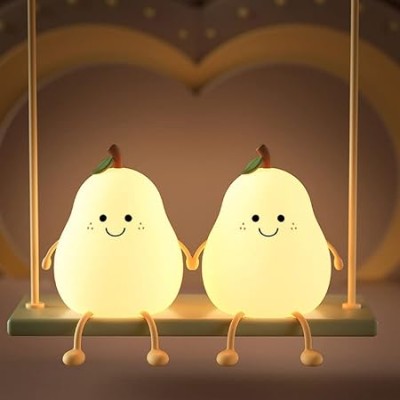 LED Pear Fruit Night Light USB Rechargeable Dimming Touch Silicone Table Lamp (2)