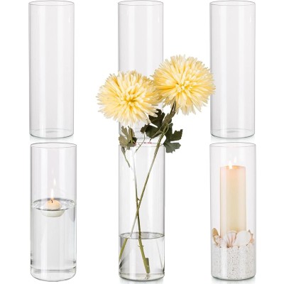 Hewory Glass Cylinder Vases Set of 6, Hurricane Candle Holders