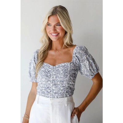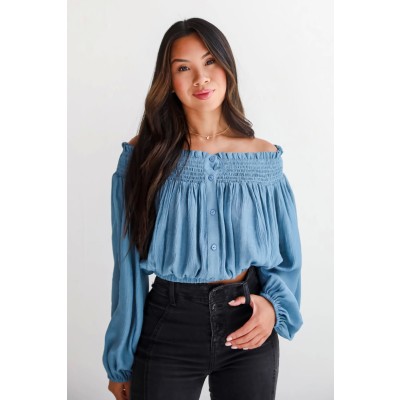 Utterly Pretty Blue Off-The-Shoulder Cropped Blouse – DU DEAL