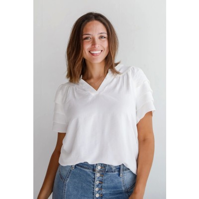 Adorably Captivating Off White Ruffle Sleeve Blouse