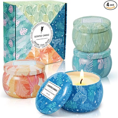 Candles Gifts for Women - 4x3.5oz Scented Portable Travel Tin Christmas Aromatherapy Candles
