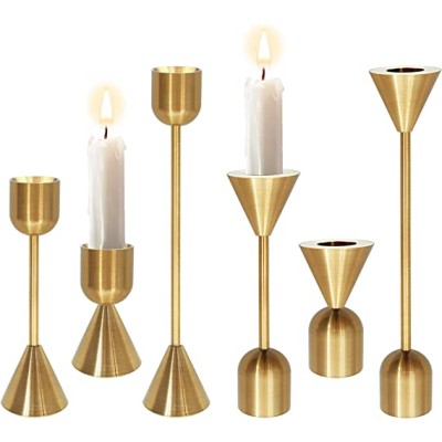 Brass Gold Candlestick Holder Set of 6 Candle Stick Holders kit Classic Decorative Candle Stick
