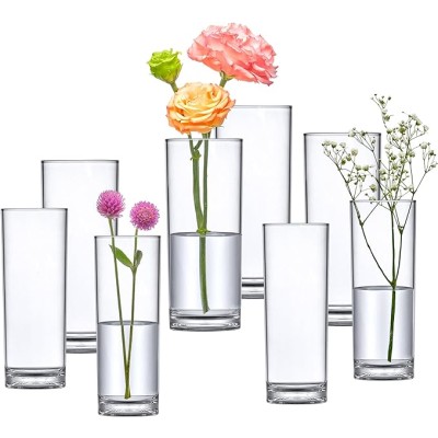 Vases (8-Piece Set), Plastic Cylindrical Flower Vases for Wedding Centerpieces