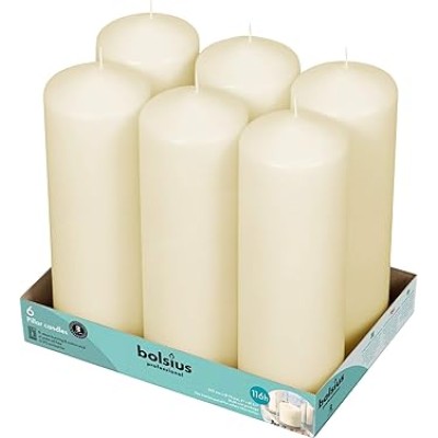 BOLSIUS 6 Ivory Pillar Candles Bulk - 3x9 Inches Candle Set - 116+ Hours Clean Burning