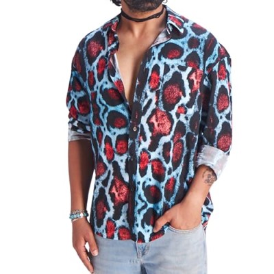 Nightfall Jaguar Leopard Print Shirt Men & Women, Long Sleeve Casual Button Down Shirts| Collared Shirts